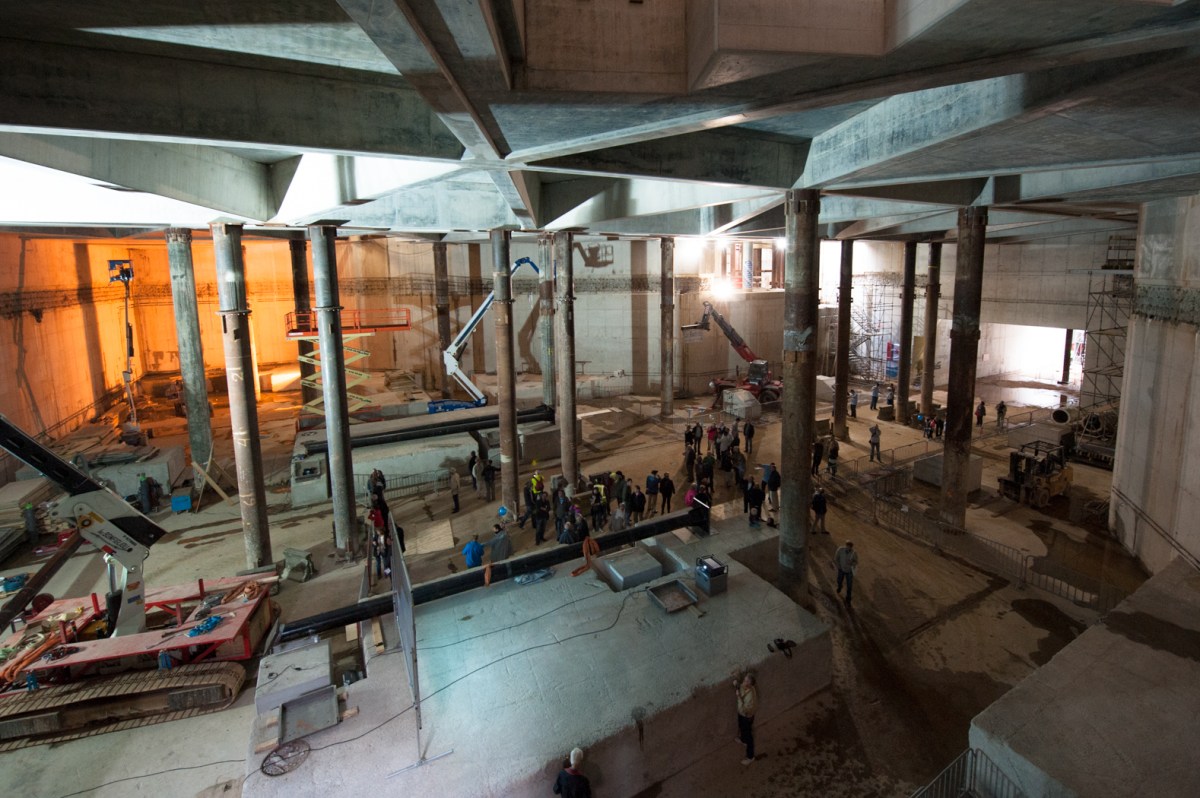 高所恐怖症の私にとっては、何十メートルも地下に下る工事用の階段を行くのは決死の覚悟だったが貴重な光景を見ることができた。