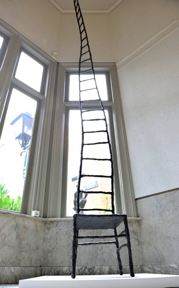 座面から高く延びていく背もたれが、まるで自由へ向かうはしごのよう。