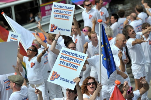 そんな現状を受けて、自由民主国民党、民主66党ほかの各政党も「ホモ差別を厳しく罰す!」などのプラカードを抱えてパレードに参加した。