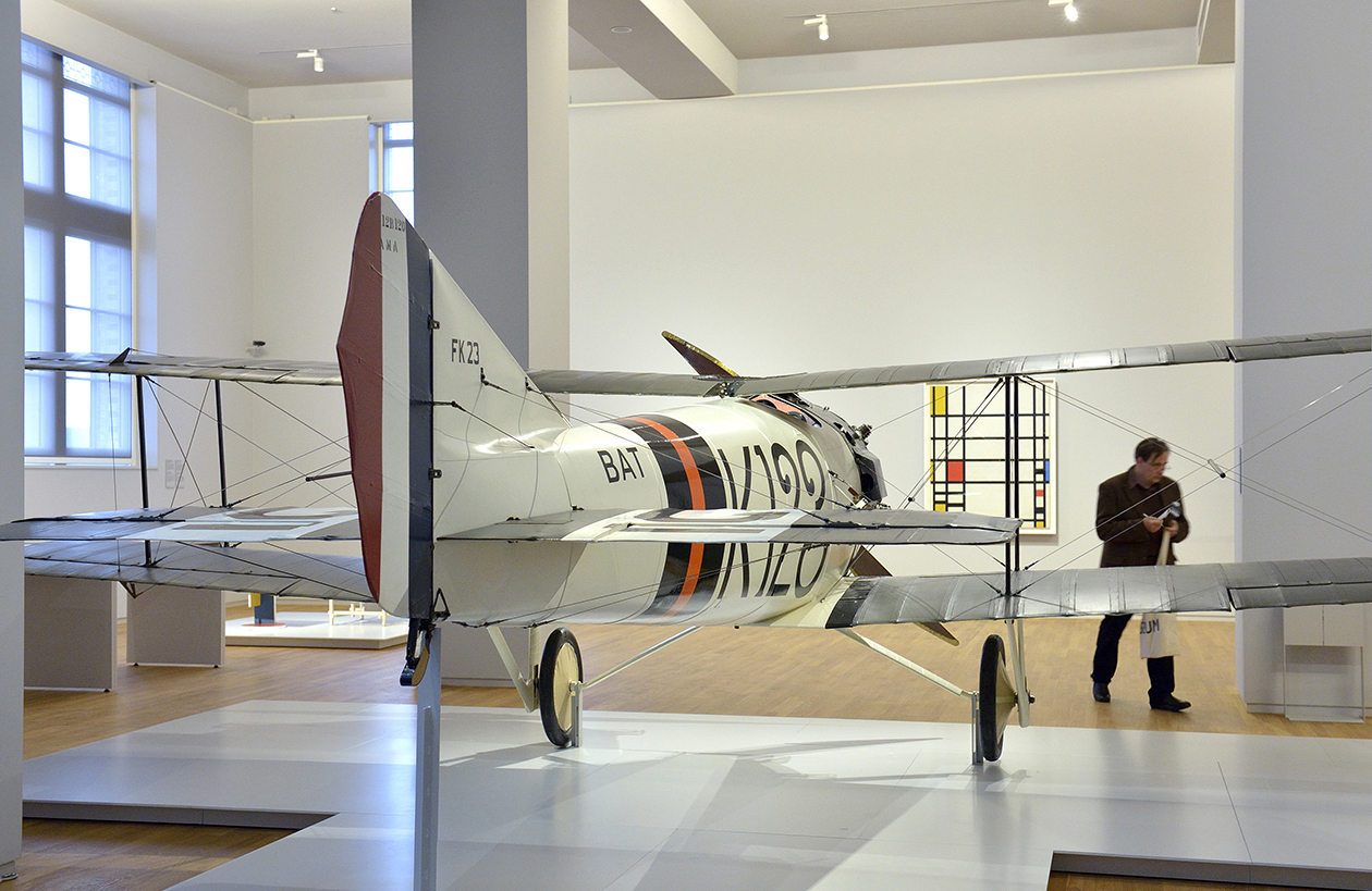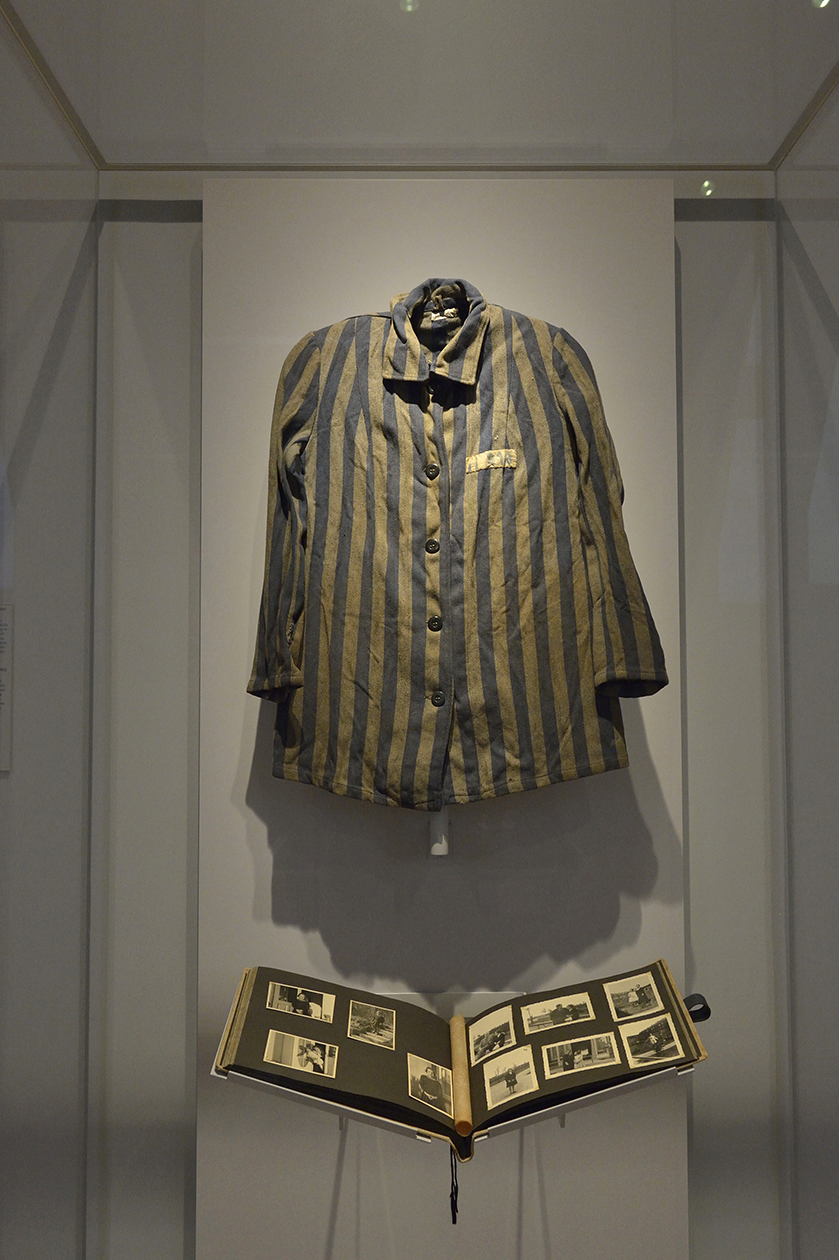 近代の展示場には、1918年に製造された飛行機や、アウシュビッツ強制収容所で着られていた縦縞の囚人服、その持ち主の家族アルバムなども並んでいた。その全てが重要な時代の証人であり、同世代の作品が生まれる背景を物語る。
