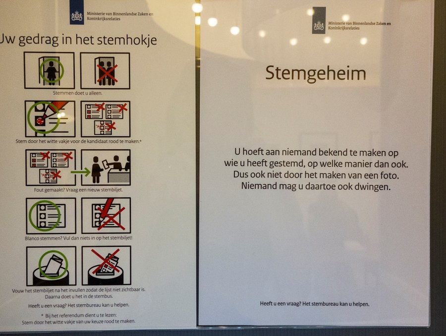 一方、ステムフィーOKのオランダでも、投票ブースには次のような張り紙が。