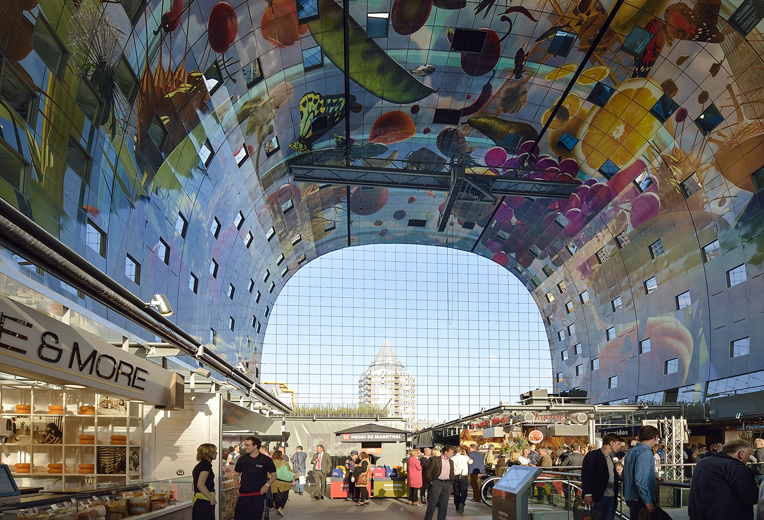 「マルクトハル」という国内最大の屋内食品市場で、世界的に知られる建築事務所MVRDVが設計デザインを手掛けた。